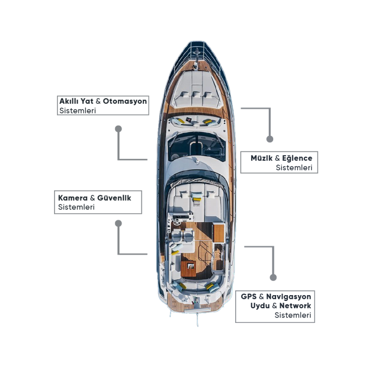 Yatınızda her şey kontrolünüz altında, üstelik siz orada olmasanız bile. Akıllı yat otomasyon sistemlerimiz sayesinde, ışıklandırmadan iklimlendirmeye ve hatta enerji sistemlerine kadar tüm donanımı tek bir noktadan kolayca yönetebilirsiniz. Gelişmiş uzaktan erişim özelliğiyle, teknenize gelmeden önce her şeyi hazır hale getirebilir; klimanın çalışmasını sağlayabilir, aydınlatmaları dilediğiniz ambiyansa göre ayarlayabilirsiniz.